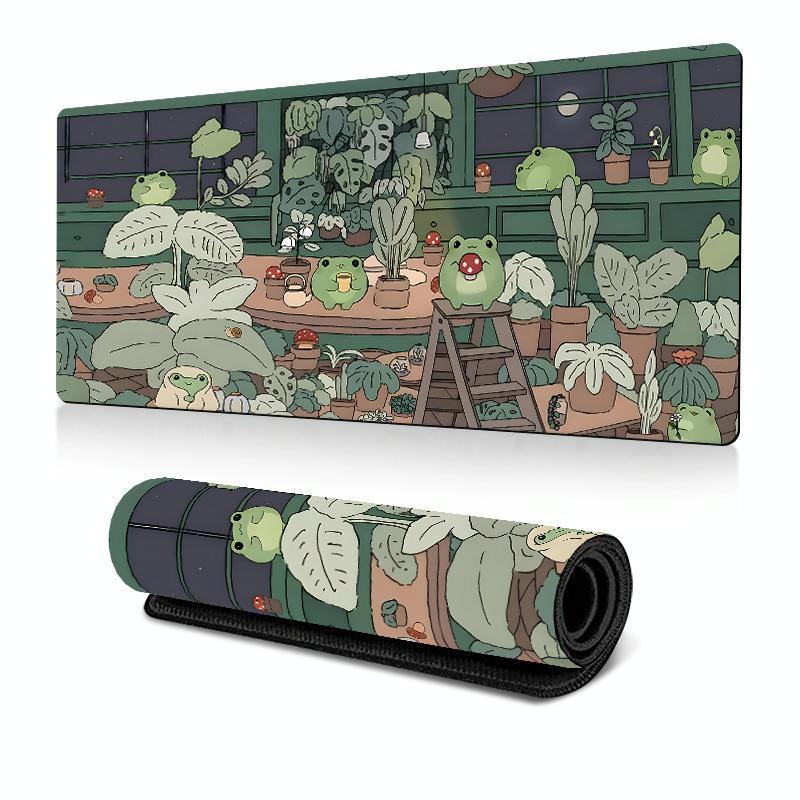 1. Adorable frog illustration surrounded by lush greenery adds a refreshing touch to your workspace.Perfect as both a standard mouse pad and a decorative desk mat for home offices, gaming setups, or student dorm rooms.