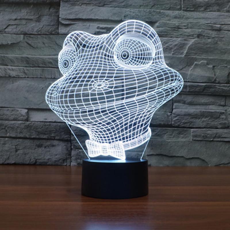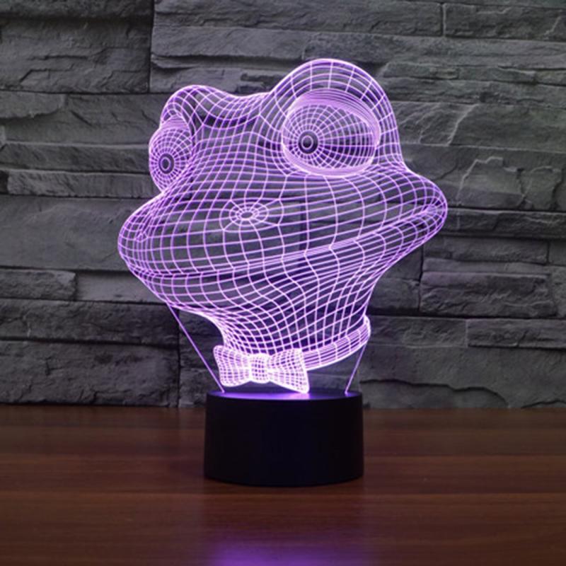 Frog Style 3D Touch Switch Control LED Light , 7 Color Discoloration Creative Visual Stereo Lamp Desk Lamp Night Light
