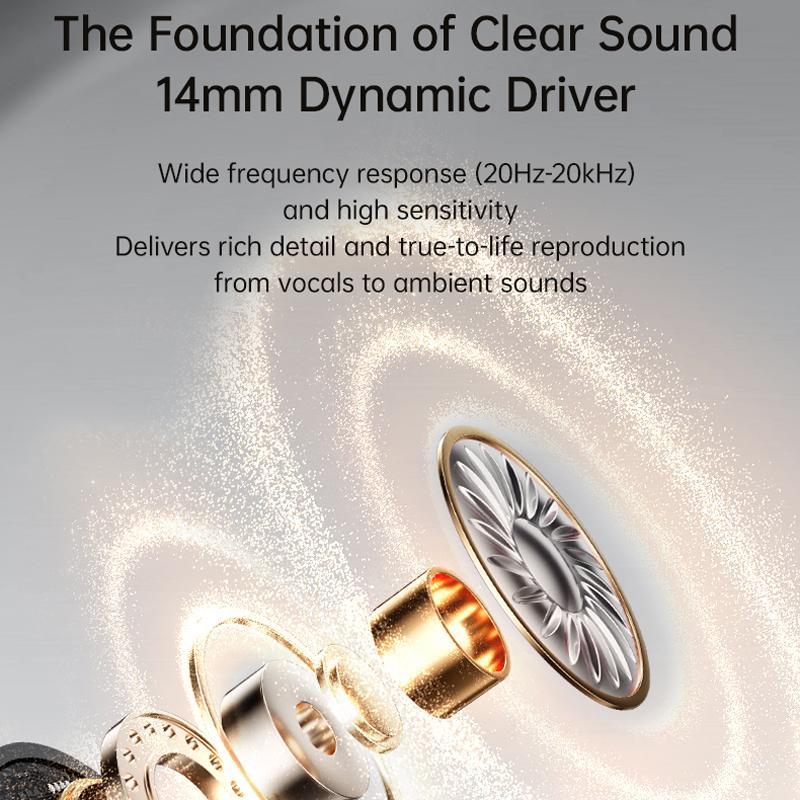 7. Built-in 14mm large voice coil unit, wide frequency response range (20Hz-20kHz) and high sensitivity, allowing for rich details of human voices and environmental sounds, true and accurate reproduction