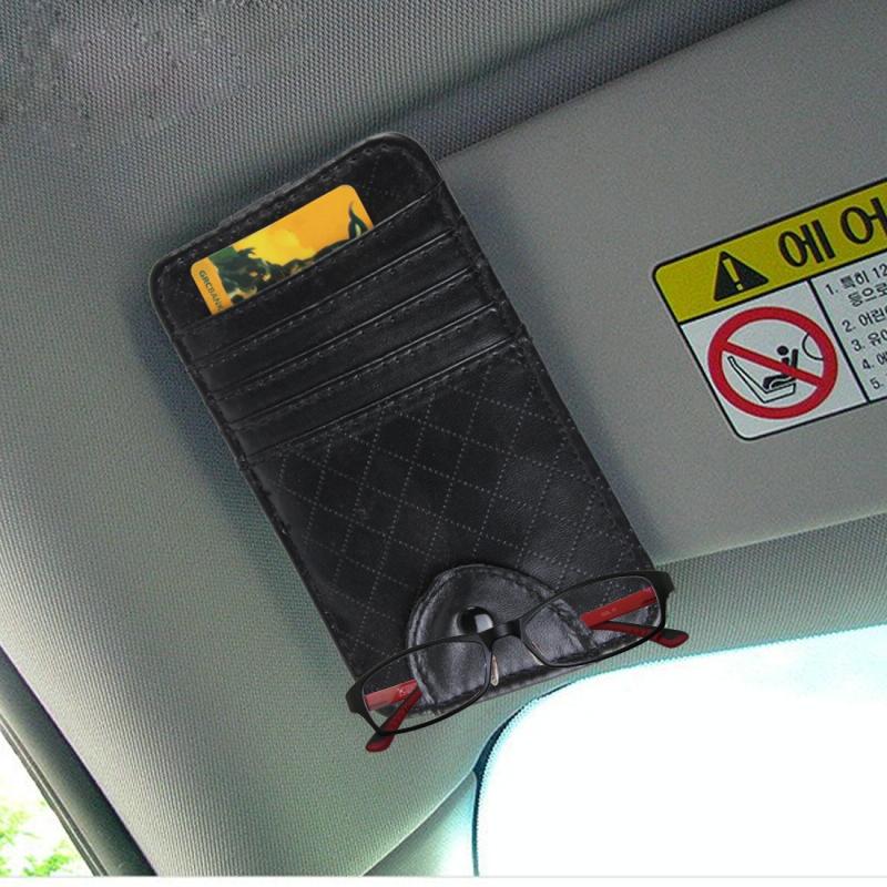 FUDAOCHE Multi-functional Auto Car Sun Visor Sunglasses Holder Card CD Storage Holder Pouch Bag(Black)