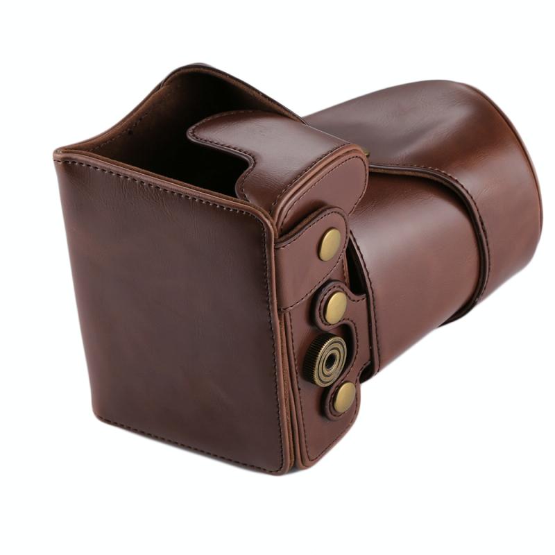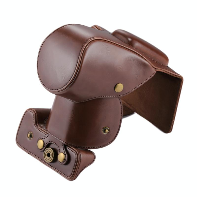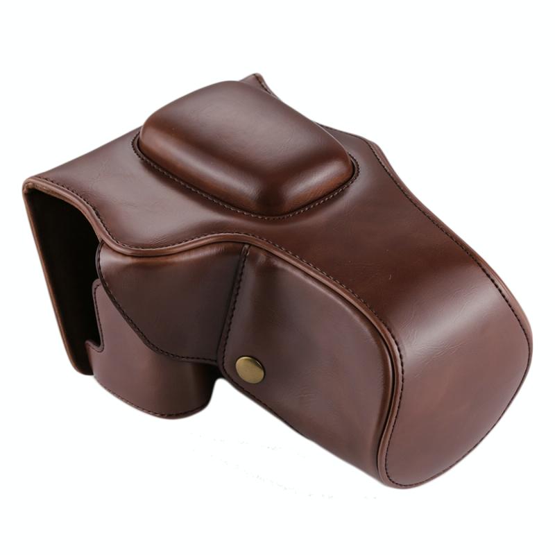 Full Body Camera PU Leather Case Bag for Canon EOS 200D (18-55mm Lens)(Coffee)