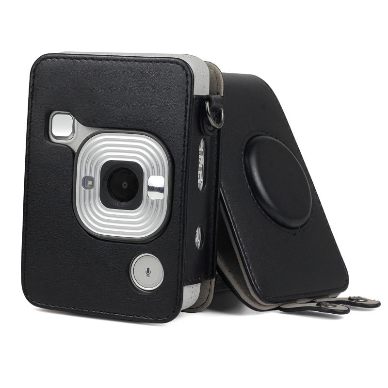 Full Body Camera Retro PU Leather Case Bag with Strap for FUJIFILM instax mini Liplay (Black)