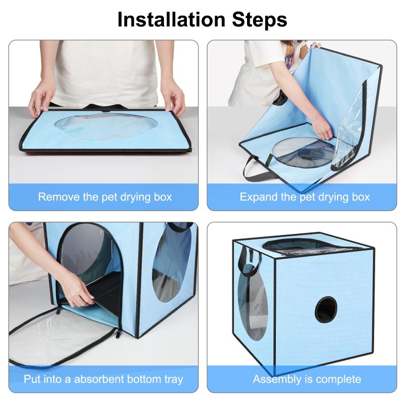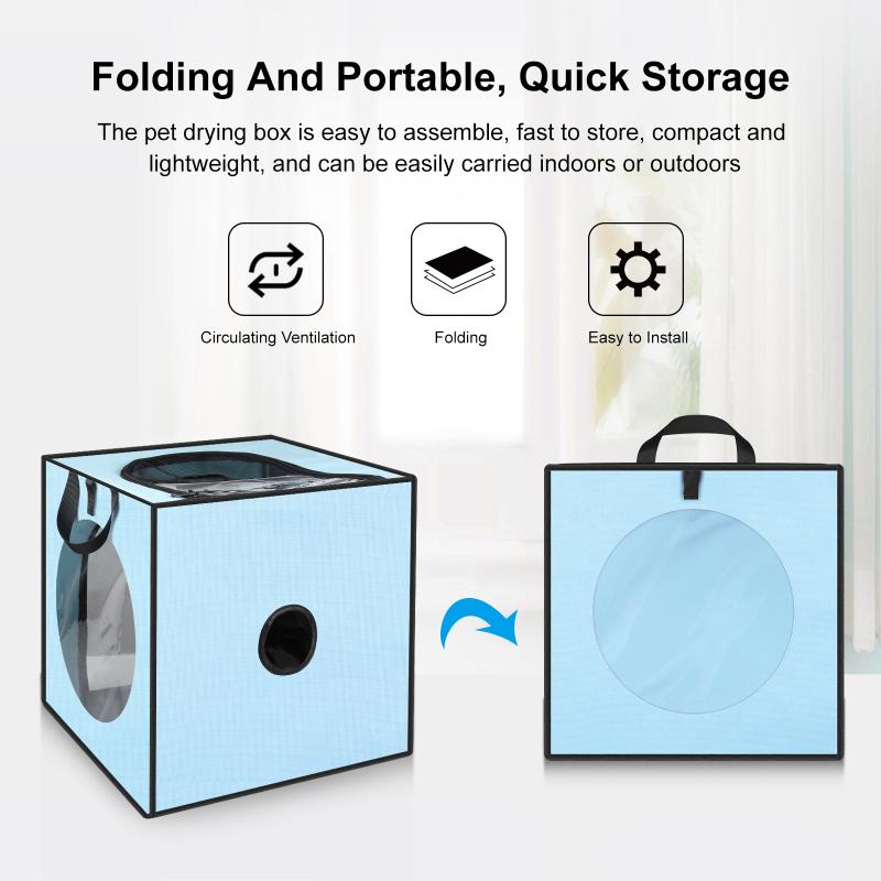 3. Foldable & Portable: Pet drying box is foldable and can be placed in a storage bag when not in use. Lightweight and sturdy, space-saving, convenient to store, easy to carry, it is an ideal choice for home use, outing and travel.