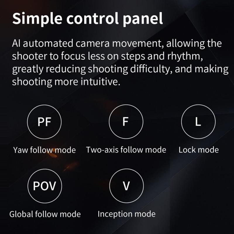 5. Six Tracking Modes: Pan Follow, Dual-Axis Follow, Lock Mode, POV, Sports Mode, and Inception Mode.