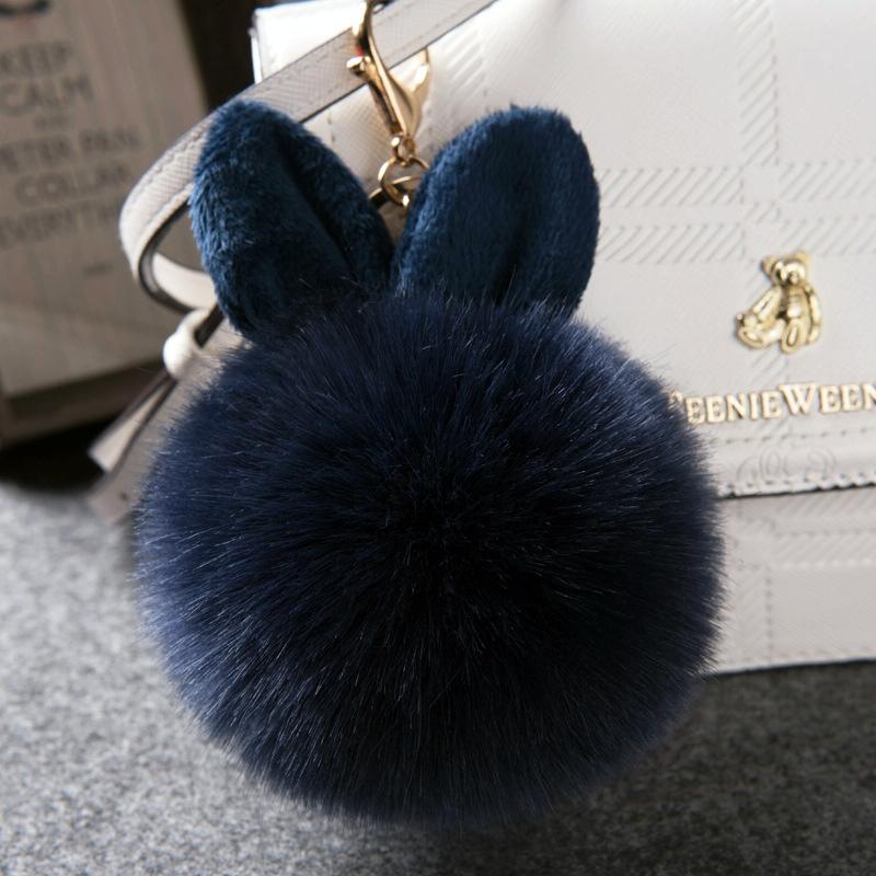 Fur Pom Keychains Fake Rabbit Fur Ball Keychain(dark blue)