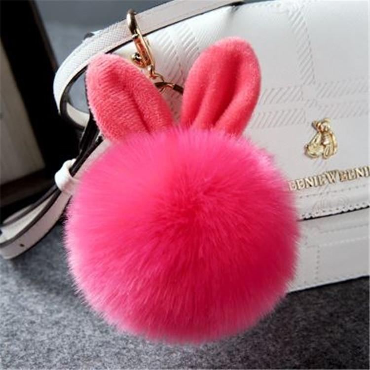 Fur Pom Keychains Fake Rabbit Fur Ball Keychain(watermelon red)