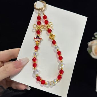 Alloy Rose Pendant Crystal Cell Phone Chain Beaded Wrist Lanyard(Red)