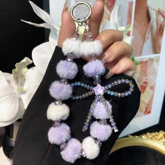 Plush Crystal Bow Cell Phone Chain Pentagram Charm Key Bag Chain(Purple+White)