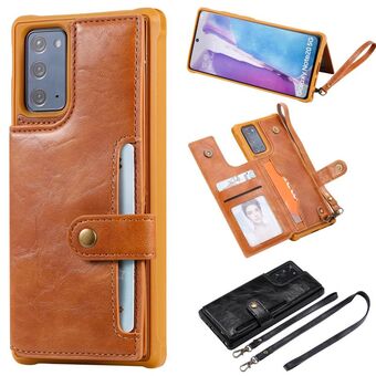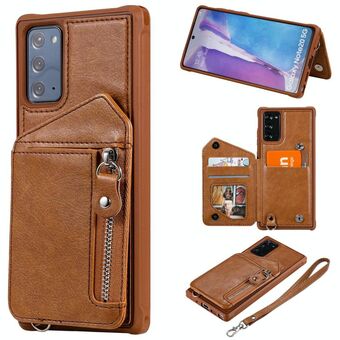 Zipper Shockproof Protective Case with Card Slots & Bracket & Photo Holder & Wallet Function For Samsung Galaxy Note20(Brown)