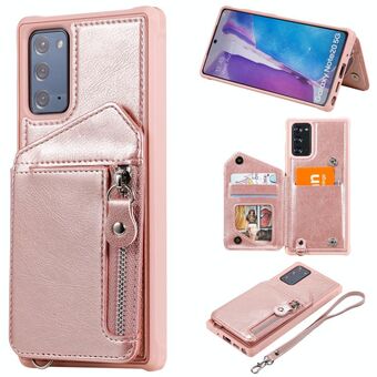 For Samsung Galaxy Note20 Zipper Double Buckle Shockproof Protective Case with Stand & Photo Holder & Wallet Function(Rose Gold)