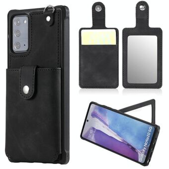 For Samsung Galaxy Note20 Shockproof Protective Case with Mirror & Card Slot & Short Lanyard(Black)
