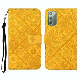 For Samsung Galaxy Note20 Ethnic Style Embossed Pattern Horizontal Flip Leather Case with Holder & Card Slots & Wallet & Lanyard(Yellow)