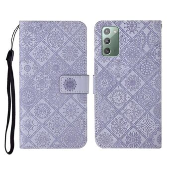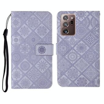 For Samsung Galaxy Note20 Ethnic Style Embossed Pattern Horizontal Flip Leather Case with Holder & Card Slots & Wallet & Lanyard(Purple)