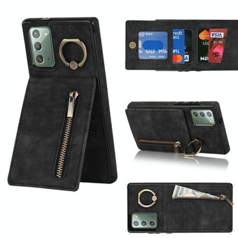For Samsung Galaxy Note20 Retro Ring and Zipper RFID Card Slot Phone Case(Purple)