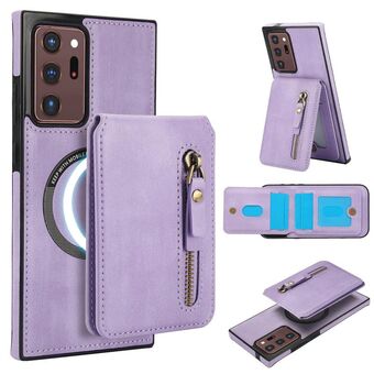For Samsung Galaxy Note20 Ultra Retro Ring and Zipper RFID Card Slot Phone Case(Purple)