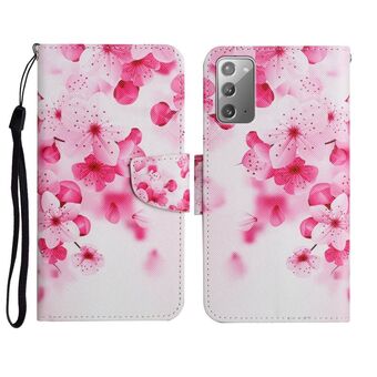 Θήκη δέρματος οριζόντιας αναδίπλωσης με σχέδιο ζωγραφικής για Samsung Galaxy Note20 με βάση & υποδοχή κάρτας & πορτοφόλι (Φωτεινό Ρόδο)