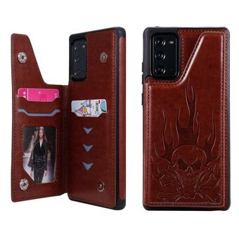 For Samsung Galaxy Note20 Skull Head Embossing Pattern Shockproof Protective Case with Holder & Card Slots & Wallet(Brown)