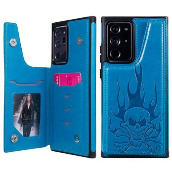 For Samsung Galaxy Note20 Ultra Skull Head Embossing Pattern Shockproof Protective Case with Holder & Card Slots & Wallet(Blue)