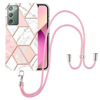 For Samsung Galaxy Note20 Electroplating Splicing Marble TPU Phone Case with Lanyard(Pink White)