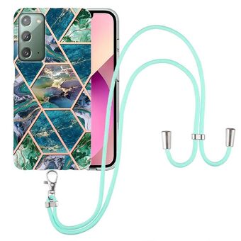 For Samsung Galaxy Note20 Electroplating Splicing Marble TPU Phone Case with Lanyard(Blue Green)