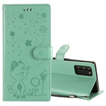 For Samsung Galaxy Note 20 Cat Bee Embossing Pattern Shockproof Horizontal Flip Leather Case with Holder & Card Slots & Wallet(Green)