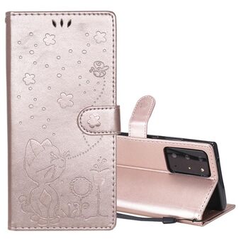 For Samsung Galaxy Note 20 Cat Bee Embossing Pattern Shockproof Horizontal Flip Leather Case with Holder & Card Slots & Wallet(Rose Gold)