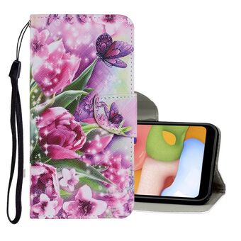 For Samsung Galaxy Note 20 Coloured Drawing Pattern Horizontal Flip PU Leather Case with Holder & Card Slots & Wallet & Lanyard(Purple Butterfly)