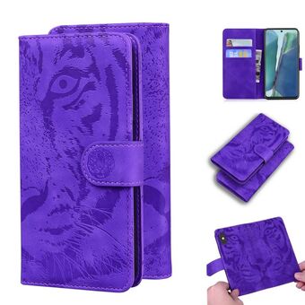 For Samsung Galaxy Note 20 Tiger Embossing Pattern Horizontal Flip Leather Case with Holder & Card Slots & Wallet(Purple)