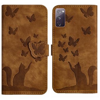 For Samsung Galaxy S20 FE Butterfly Cat Embossing Flip Leather Phone Case(Brown)