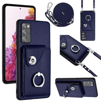 For Samsung Galaxy S20 FE Organ Card Bag Ring Holder Phone Case with Long Lanyard(Blue)