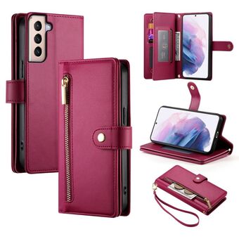 For Samsung Galaxy S21 5G Nine Card-slot Zipper Wallet Bag Leather Phone Case(Purple)