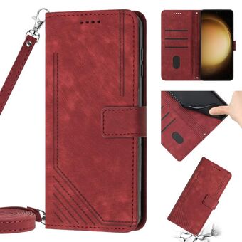 For Samsung Galaxy S21+ 5G Skin Feel Stripe Pattern Leather Phone Case with Lanyard(Red)
