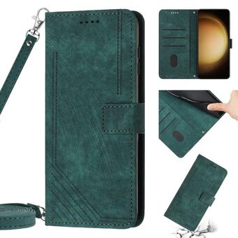For Samsung Galaxy S21+ 5G Skin Feel Stripe Pattern Leather Phone Case with Lanyard(Green)
