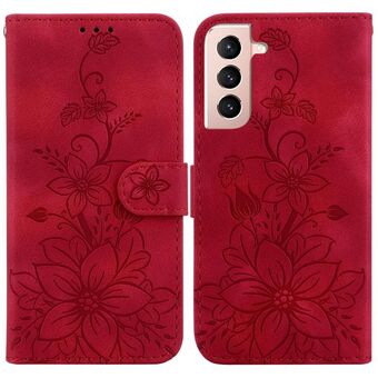 For Samsung Galaxy S21 5G Lily Embossed Leather Phone Case(Red)