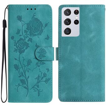 For Samsung Galaxy S21 Ultra 5G Rose Flower Embossing Pattern Leather Phone Case(Green)
