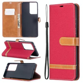For Samsung Galaxy S21 Ultra 5G Color Matching Denim Texture Horizontal Flip Leather Case with Holder & Card Slots & Wallet & Lanyard(Red)
