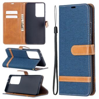 For Samsung Galaxy S21 Ultra 5G Color Matching Denim Texture Horizontal Flip Leather Case with Holder & Card Slots & Wallet & Lanyard(Purple)