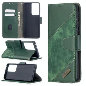 For Samsung Galaxy S21 Ultra 5G Matching Color Crocodile Texture Horizontal Flip PU Leather Case with Wallet & Holder & Card Slots(Green)