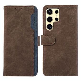 For Samsung Galaxy S21 Ultra 5G ABEEL Color Block Magnetic RFID Leather Phone Case(Brown-Blue)