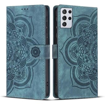 For Samsung Galaxy S21 Ultra 5G Mandala Embossed Retro Frosted Leather Phone Case(Blue)
