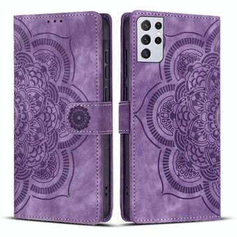 For Samsung Galaxy S21 Ultra 5G Mandala Embossed Retro Frosted Leather Phone Case(Purple)