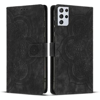 For Samsung Galaxy S21 Ultra 5G Mandala Embossed Retro Frosted Leather Phone Case(Black)