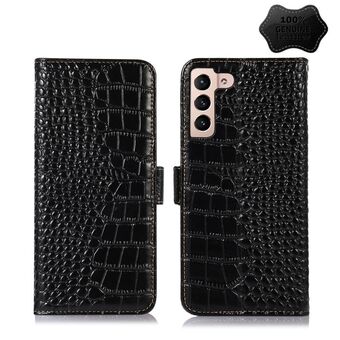 For Samsung Galaxy S22+ 5G Crocodile Top Layer Cowhide Leather Phone Case(Black)