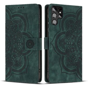 For Samsung Galaxy S22 Ultra 5G Sun Mandala Embossing Pattern Phone Leather Case with Holder & Card Slots & Wallet & Lanyard(Green)