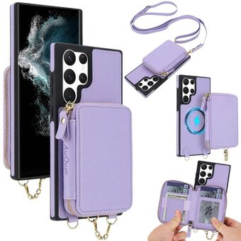 For Samsung Galaxy S22 Ultra 5G AwQuer 2 in 1 Crossbody Zipper Wallet Leather Back Phone Case(Light Purple) (Awquer)