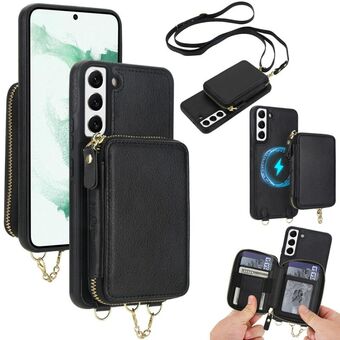 For Samsung Galaxy S22 5G AwQuer 2 in 1 Crossbody Zipper Wallet Leather Back Phone Case(Black) (Awquer)
