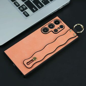 For Samsung Galaxy S22 Ultra 5G Wavy Wristband Bracket TPU Phone Case(Pink)