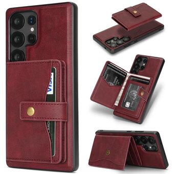 For Samsung Galaxy S22 Ultra 5G Kalebol Magnetic Button Card Bag MagSafe Ring Leather Phone Case(Red) (Kalebol)