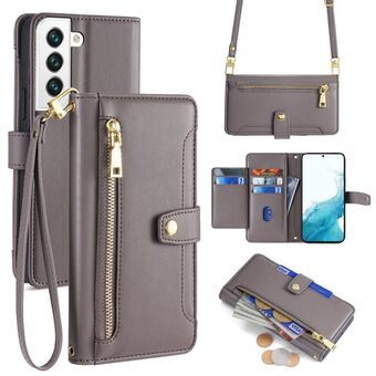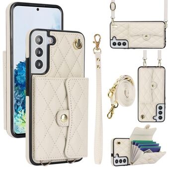 For Samsung Galaxy S22 5G AwQuer Crossbody Zipper Wallet Rhombic Leather Back Phone Case(Rose Gold) (Awquer)