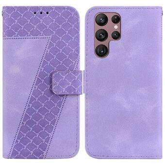 For Samsung Galaxy S22 Ultra 5G Embossed Checkered Leather Phone Case(Purple)